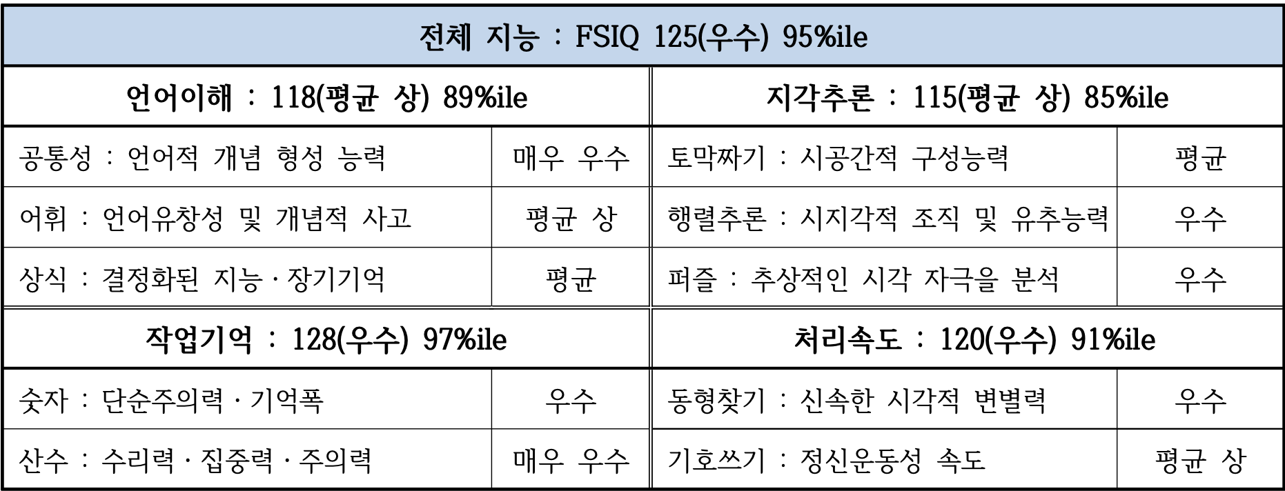 8월 초 여름 휴가 겸 한국에 갔다오면서 하루 오전에 날을 잡아서 지능검사를 받아봤다.