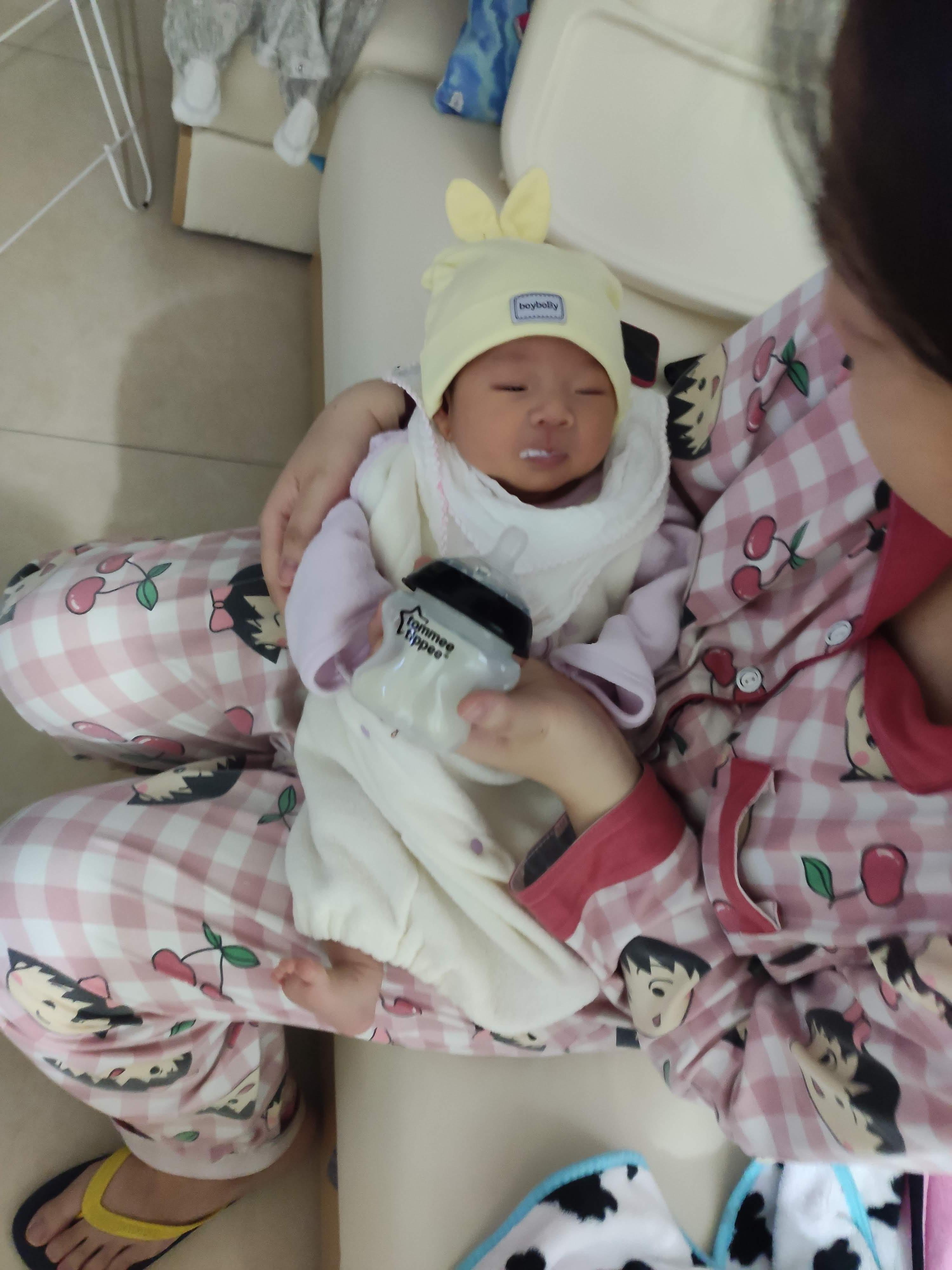 분유의 양은 60-90ml가 적당한데 가끔 90ml를 먹여도 배고프다고 칭얼거리는 경우가 있다. 이럴 땐 좀 오래 잤거나 변을 많이 본 후에 정말 배가 고파서 그러는 경우도 있지만 보통은 너무 급하게 먹은 터라 배고프다고 착각하는 경우이거나 더 빨고 싶은 본능에 의한 경우도 있다. 배고픈게 아닌데 계속 달라는 대로 분유를 먹이다 보면 과식이 되고, 과식은 아이를 불편하게 만들어서 잠에 못들게 할 뿐만아니라 그로인해 아이가 토를 하기도 한다. 이럴땐 공갈젖꼭지를 사용해서 배가 정말로 고픈 건지 그저 더 빨고 싶은 건지 알아볼 수도 있는데 나는 웬만하면 공갈젖꼭지를 사용하지 않으려고 노력 중이다. 좀 천천히 먹을 수 있도록 중간중간 쉬어주는 방식으로 애초에 급하게 먹지 않도록 방지하거나 이미 급하게 먹은 경우에는 상체를 세우고 아이와 눈을 마주치며 마사지를 해주거나 이런저런 얘기를 해주며 소화를 도와주기도 한다.